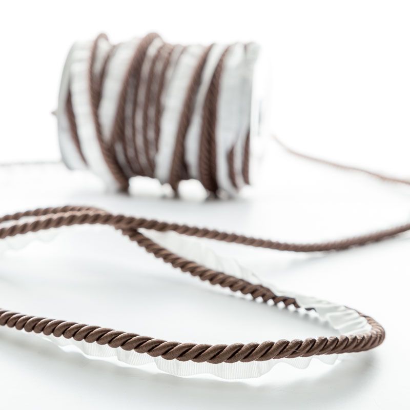 Декоративный витой круглый шнур, снабженый тесьмой для втачивания в стыковочный шов изделия. Применяется для отделки мягкой мебели, чехлов, декорирования домашнего текстиля, штор, покрывал, подушек. Позволяет изделию сохранять форму, образуя каркас. Диаметр шнура - 8 мм.