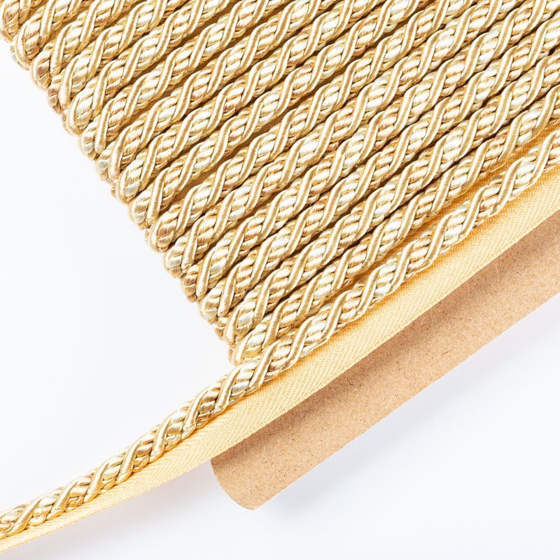 Декоративный витой круглый шнур, снабженый тесьмой для втачивания в стыковочный шов изделия. Применяется для отделки мягкой мебели, чехлов, декорирования домашнего текстиля, штор, покрывал, подушек. Позволяет изделию сохранять форму, образуя каркас. Диаметр шнура - 8 мм. Общая ширина шнура с тесьмой - 2 см.