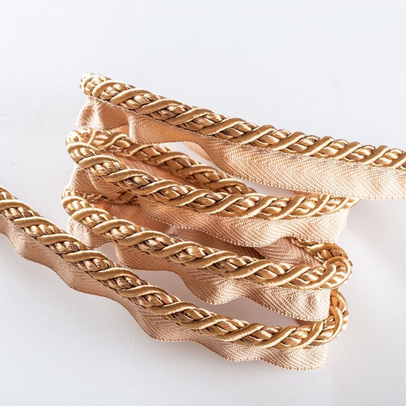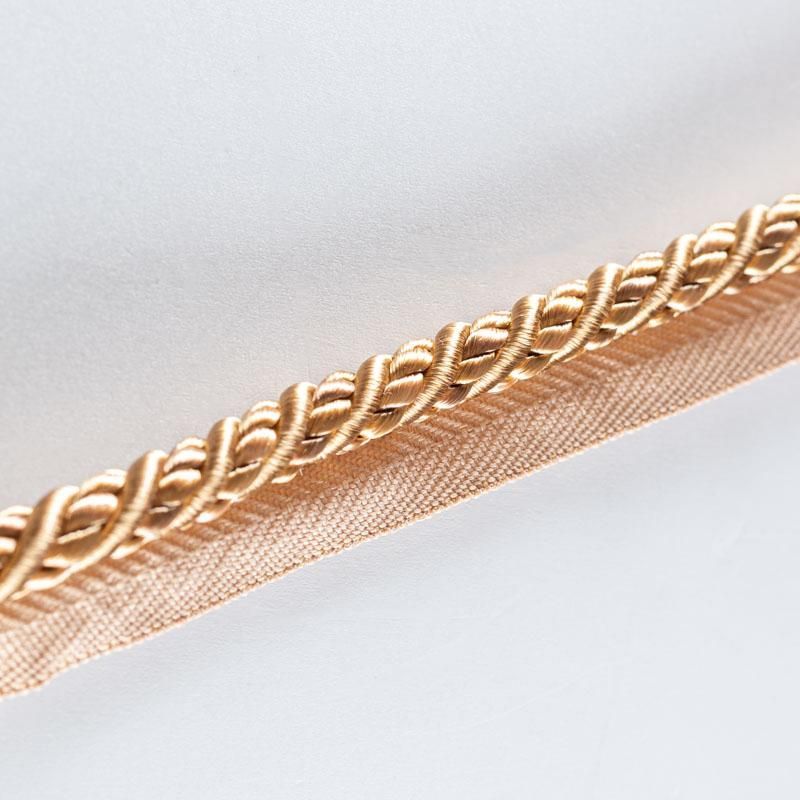 Декоративный витой круглый шнур, снабженый тесьмой для втачивания в стыковочный шов изделия. Применяется для отделки мягкой мебели, чехлов, декорирования домашнего текстиля, штор, покрывал, подушек. Позволяет изделию сохранять форму, образуя каркас. Диаметр шнура - 8 мм. Общая ширина шнура с тесьмой - 2 см.