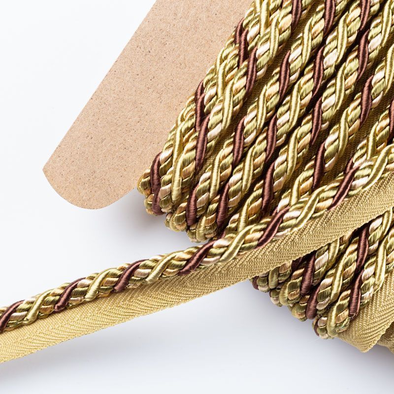 Декоративный витой круглый шнур, снабженый тесьмой для втачивания в стыковочный шов изделия. Применяется для отделки мягкой мебели, чехлов, декорирования домашнего текстиля, штор, покрывал, подушек. Позволяет изделию сохранять форму, образуя каркас. Диаметр шнура - 8 мм. Общая ширина шнура с тесьмой - 2 см.