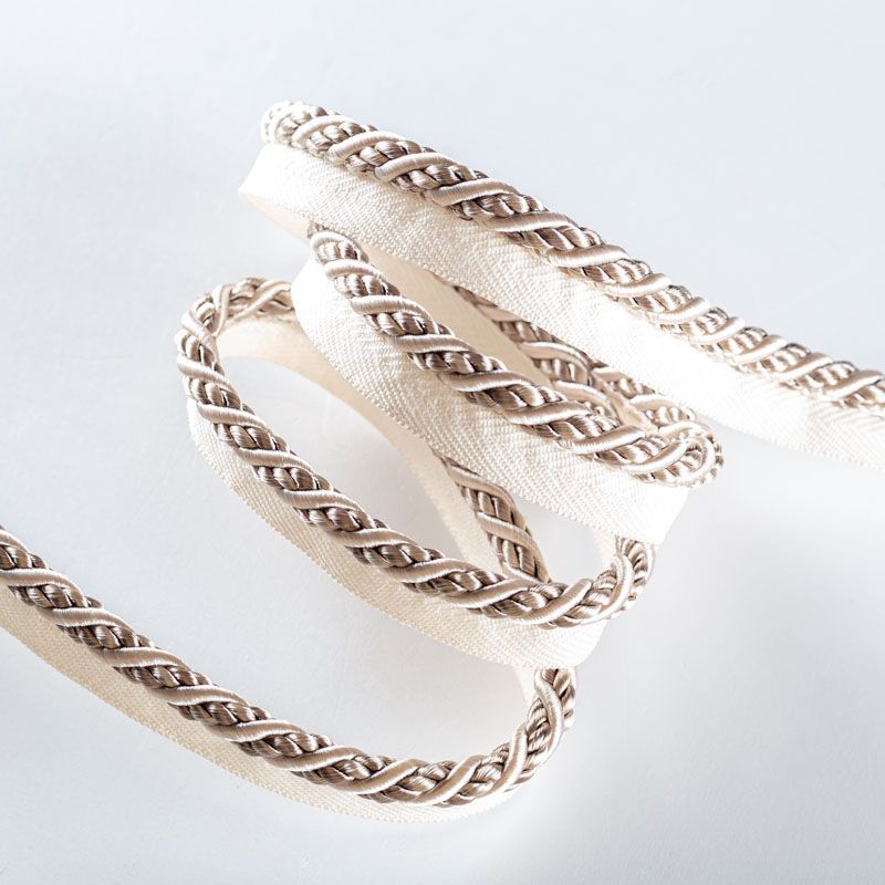 Декоративный витой круглый шнур, снабженый тесьмой для втачивания в стыковочный шов изделия. Применяется для отделки мягкой мебели, чехлов, декорирования домашнего текстиля, штор, покрывал, подушек. Позволяет изделию сохранять форму, образуя каркас. Диаметр шнура - 8 мм. Общая ширина шнура с тесьмой - 2 см.