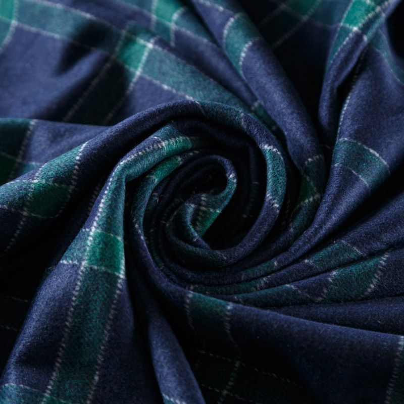 Костюмно-пальтовая шотландка средней плотности в сине-зеленую клетку. Ткань мягкая и пластичная, поверхность в небольшим ворсом, хорошо драпируется, слегка держит форму. Подойдет для пошива теплого костюма, юбки, шорт, жакета, пальто, бомбера, мягкой куртки.
