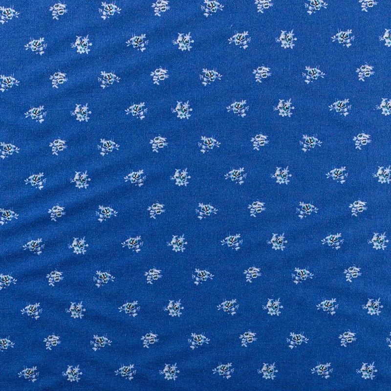 Плательно-блузочный штапель с мелким цветочным принтом на синем джинсовом фоне. Мягкий, тонкий, нежный, пластичный, приятный на ощупь, хорошо драпируется, практичный. Подойдет для пошива платья, топа, блузки, рубашки, юбки, летних брюк.