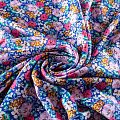 Плательно-блузочный штапель с нежным цветочным принтом на насыщенном синем фоне. Мягкий, тонкий, нежный, пластичный, приятный на ощупь, хорошо драпируется, практичный. Подойдет для пошива платья, топа, блузки, рубашки, юбки, летних брюк.