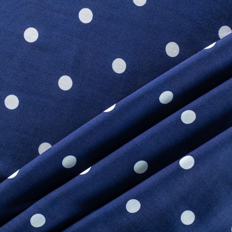 Плательно-блузочный штапель в белый горох на темно-синем фоне. Мягкий, тонкий, нежный, пластичный, приятный на ощупь, хорошо драпируется, практичный. Подойдет для пошива платья, топа, блузки, рубашки, юбки, летних брюк.