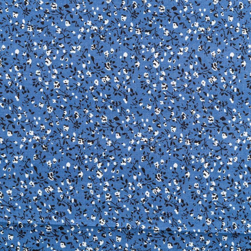 Плательно-блузочный штапель с мелким растительным принтом на сине-голубом фоне. Мягкий, тонкий, нежный, пластичный, приятный на ощупь, хорошо драпируется, практичный. Подойдет для пошива платья, топа, блузки, рубашки, юбки, летних брюк, комбинезона.