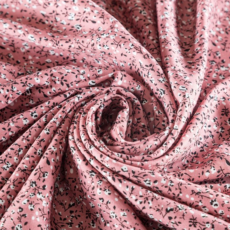 Плательно-блузочный штапель с мелким растительным принтом на темно-розовом фоне. Мягкий, тонкий, нежный, пластичный, приятный на ощупь, хорошо драпируется, практичный. Подойдет для пошива платья, топа, блузки, рубашки, юбки, летних брюк, комбинезона.