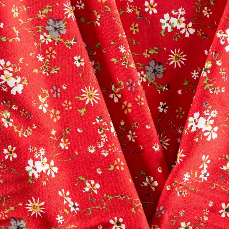 Плательно-блузочный штапель с мелким растительным принтом на красном фоне с терракотовым оттенком. Мягкий, тонкий, нежный, пластичный, приятный на ощупь, хорошо драпируется, практичный. Подойдет для пошива платья, топа, блузки, рубашки, юбки, летних брюк, комбинезона.