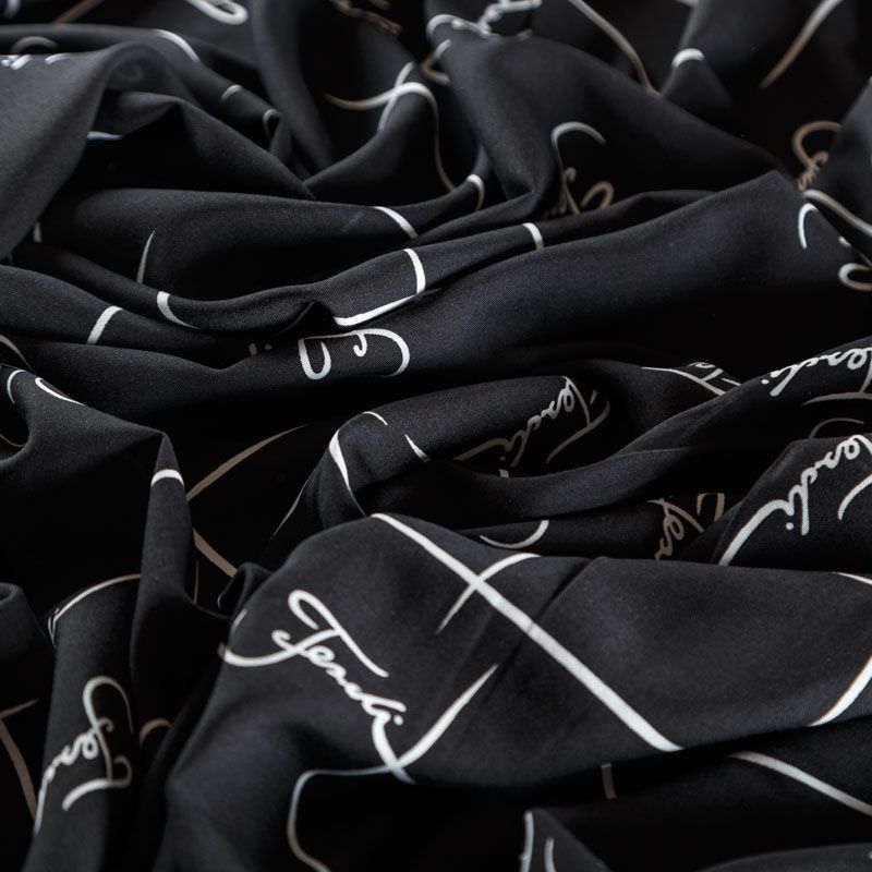 Плательно-блузочный штапель с белым графичным принтом на черном фоне. Материал мягкий, тонкий, нежный, пластичный, приятный на ощупь, хорошо драпируется, практичный. Подойдет для пошива платья сарафана, топа, блузки, рубашки, юбки, летних брюк, комбинезона, а также домашней одежды.