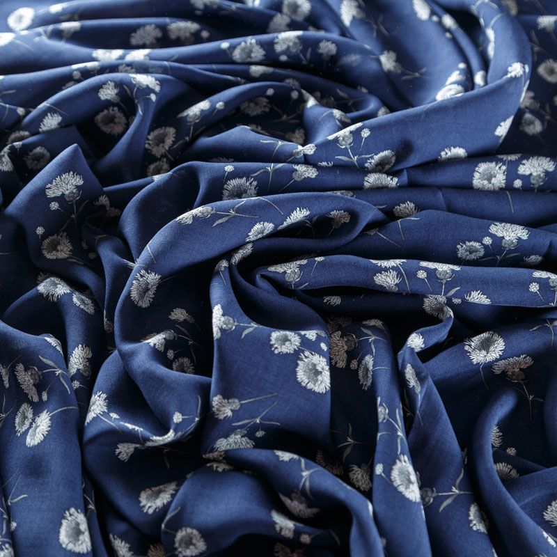 Итальянский плательно-блузочный штапель темно-синего цвета с нежным цветочным принтом. Ткань мягкая, тонкая, нежная и пластичная, приятная на ощупь, хорошо драпируется, практичная. Подойдет для пошива платья, топа, блузки, рубашки, юбки, летних брюк.