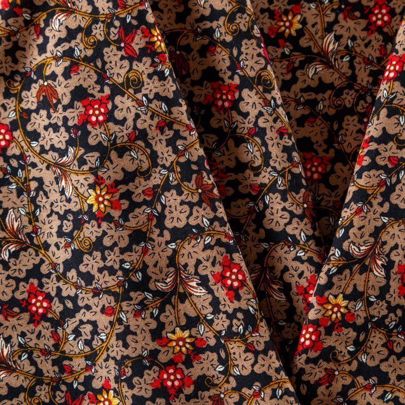 Штапель 069-09221 коричневый принтованный в Салехарде