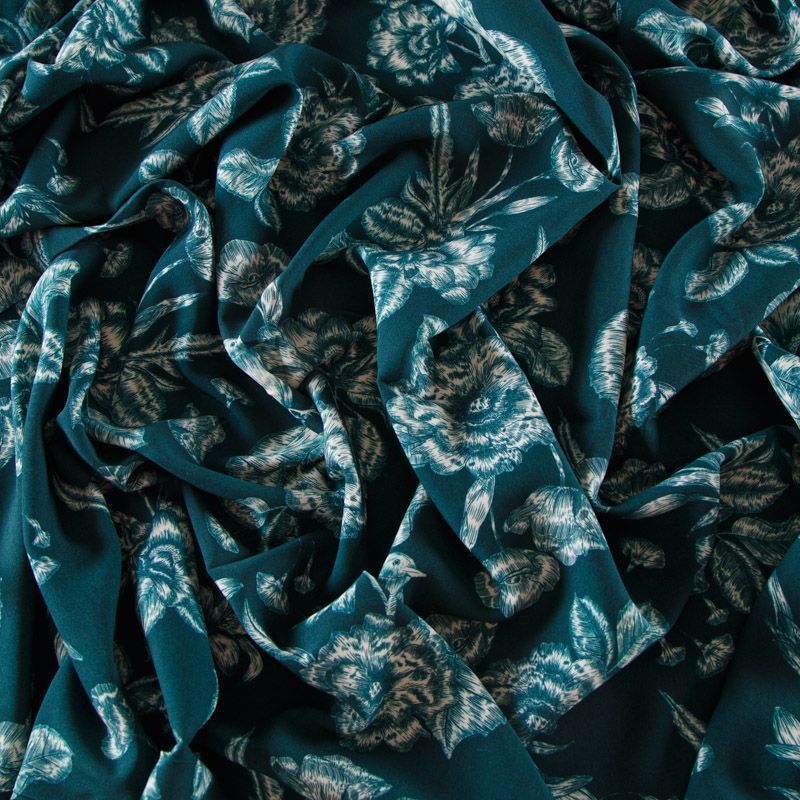 Штапель 069-12290 темно-бирюзовый принтованный