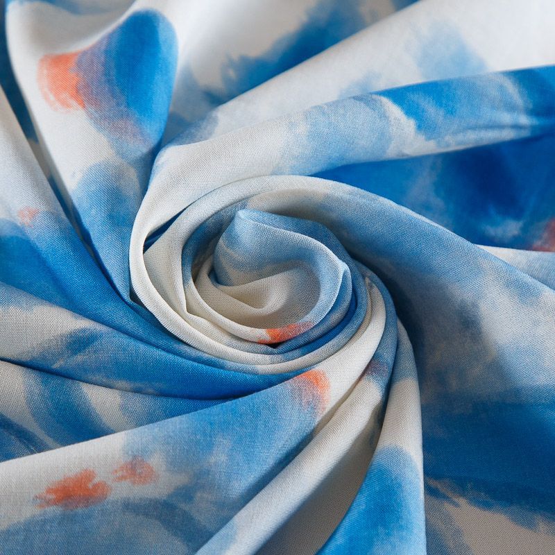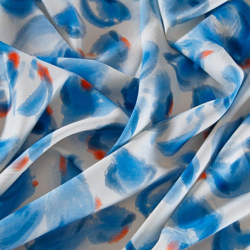 Штапель 069-17527 бело-голубой принтованный в Салехарде