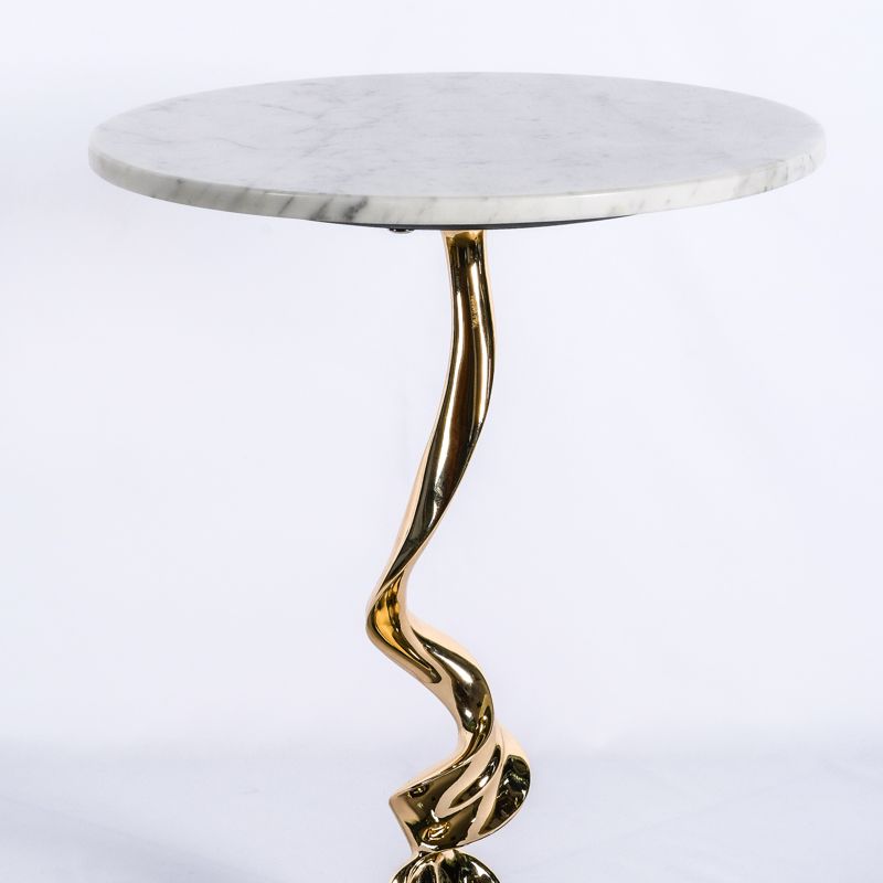 Столик кофейный/журнальный. Высота 50 см, диаметр столешницы 40 см. Подстолье выполнено из металла - золото хром, столешница - камень.