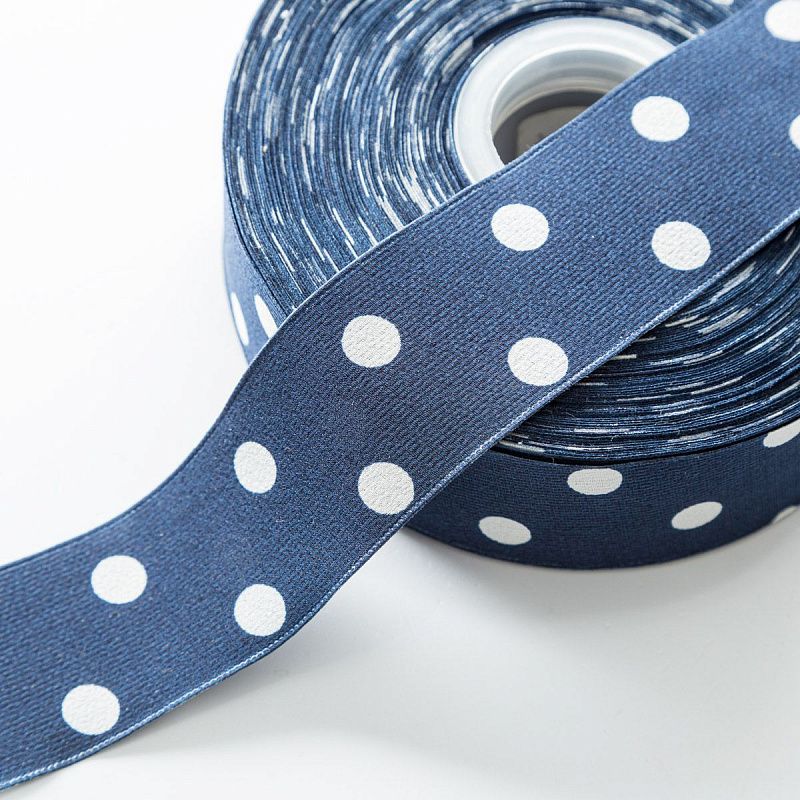 Тесьма декоративная 40 мм белый горох 590944 синий