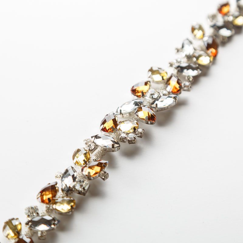 Декоративная тесьма на жесткой основе со стразами используется для декора и отделки одежды, создания украшений и т.д.