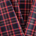 Ткань костюмно-плательной плотности, мягкая и приятная на ощупь, немного тянется за счет эластана в составе, держит форму, хорошо драпируется и образует мягкие складки. Сочетание тонких линий белого, красного, желтого и синего цветов на черном фоне образует сложную красивую клетку. Ткань отлично подойдет на костюмы, юбки, брюки, шорты, платья, жакеты.