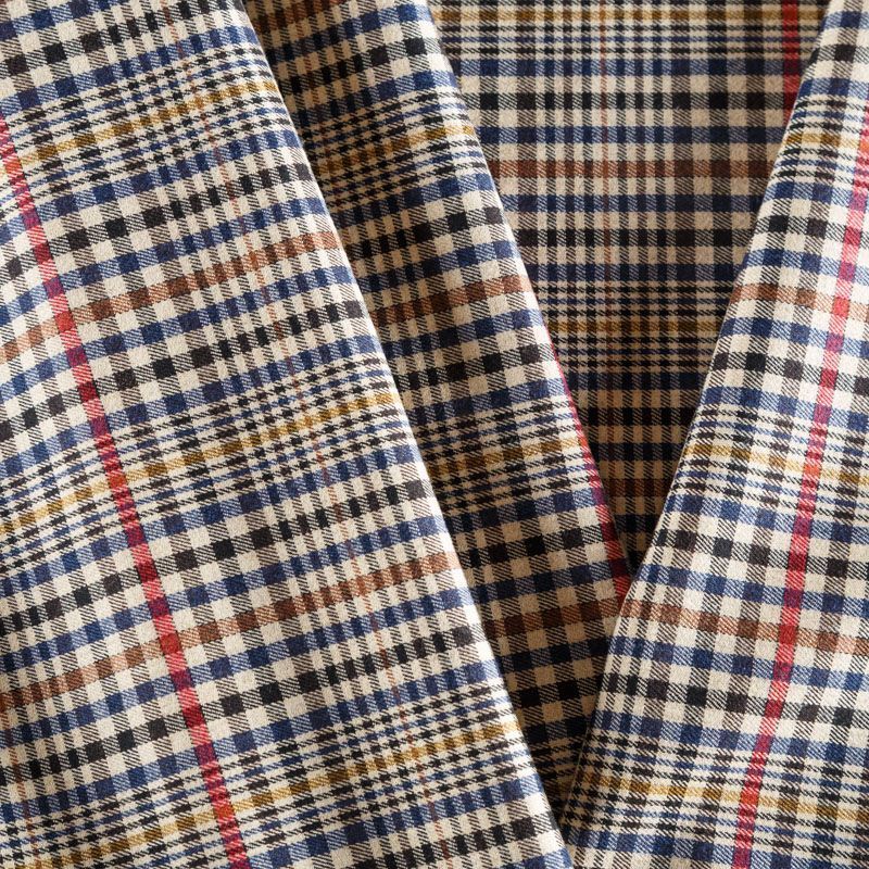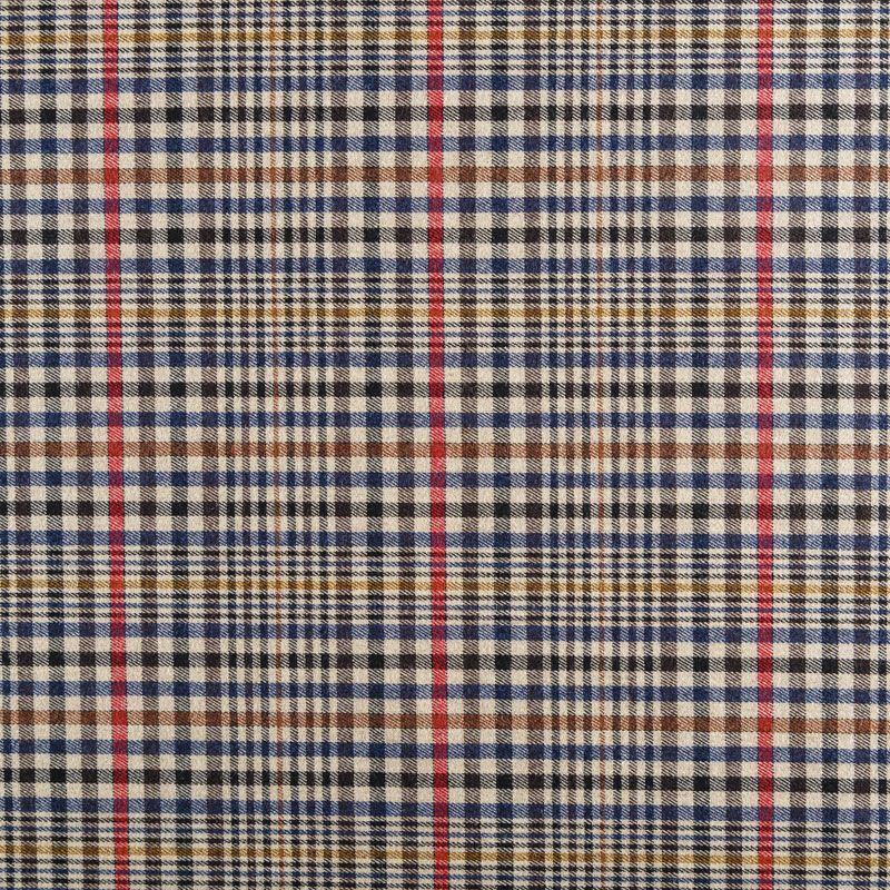 Итальянская костюмно-плательная ткань средней плотности, не сухая, пластичная, приятная на ощупь, тянется за счет эластана в сотаве, формоустойчива, не мнется, хорошо драпируется. Мелкая клетка образована за счет сочетания полос черного, синего, красного, молочного и желтого оттенков. Ткань отлично подойдет на костюмы, юбки, брюки, платья, жакеты, сарафаны, шорты.