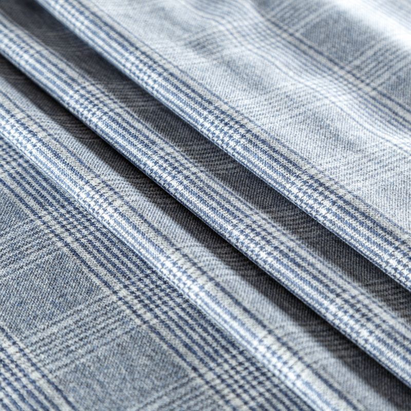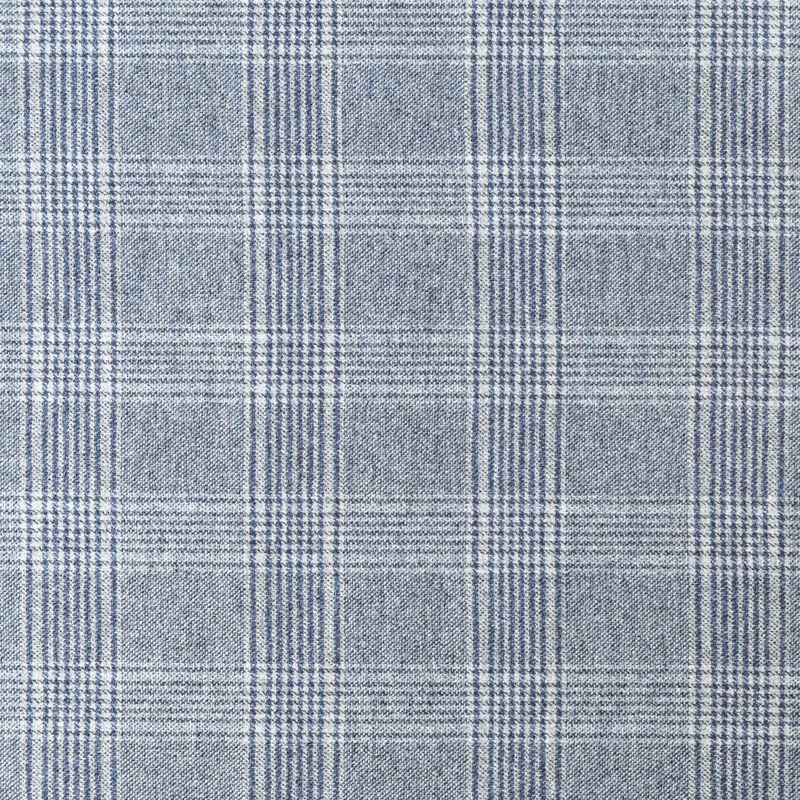 Итальяская костюмно-плательная шерсть в серо-голубых оттенках в клетку тартан. Ткань средней плотности, пластичная, очень приятная на ощупь, драпируется в слегка держащие форму складки, с полотняным переплетением, не тянется. Подойдет для всех видов изделий - платьев, сарафанов, модных жакетов, жилетов, брючных и юбочных костюмов, кюлотов, брюк-палаццо, юбок различных фасонов.