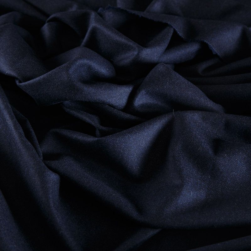 Итальянская костюмно-плательная смесовая ткань средней плотности в темно-синем оттенке. Не сухая, пластичная, приятная на ощупь, почти не мнется, хорошо драпируется, тянется за счет эластана в составе. Отлично подойдет на костюм, жилет, жакет, легкое пальто, юбку, брюки, платье, сарафан, шорты.