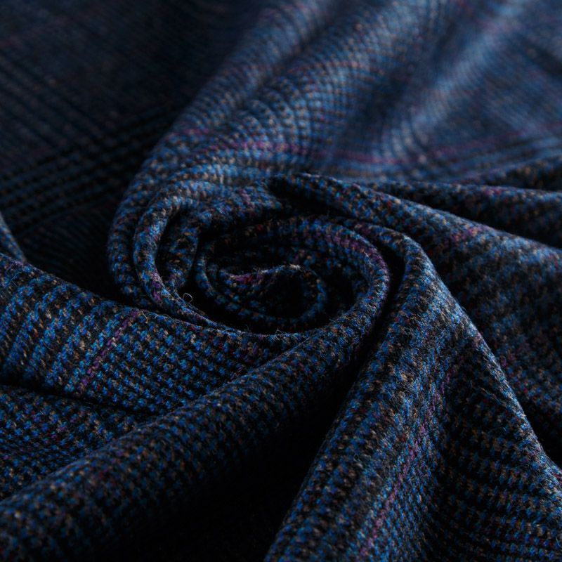 Итальянская костюмно-плательная смесовая ткань средней плотности в синем оттенке в клетку тартан. Ткань не сухая, пластичная, приятная на ощупь, почти не мнется, хорошо драпируется. Отлично подойдет на костюм, жилет, жакет, легкое пальто, юбку, брюки, платье, сарафан, шорты.
