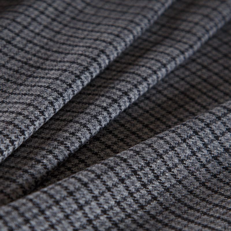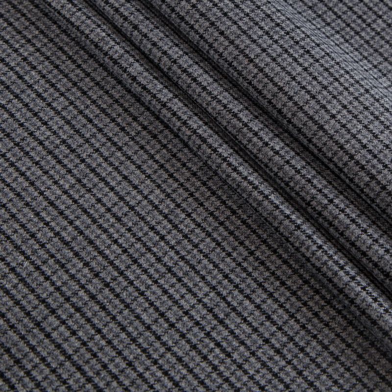 Итальянская костюмно-плательная смесовая ткань средней плотности, не сухая, пластичная, приятная на ощупь, почти не мнется, хорошо драпируется. Мелкая клетка образована за счет сочетания полос черного и серого оттенков. Ткань отлично подойдет на костюм, жилет, жакет, легкое пальто, юбку, брюки, платье, сарафан, шорты.
