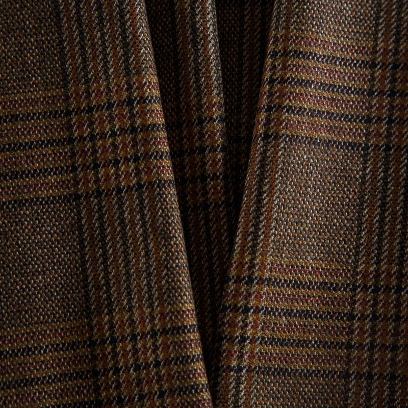 Итальянская шерстяная костюмная клетка гленчек в духе настоящей английской классики в благородном коричневом оттенке. Ткань мягкая, хорошо держит форму, не мнётся, не колется. Отлично подойдёт для жакета, платья, жилета, облегчённого пальто, брюк или юбки.