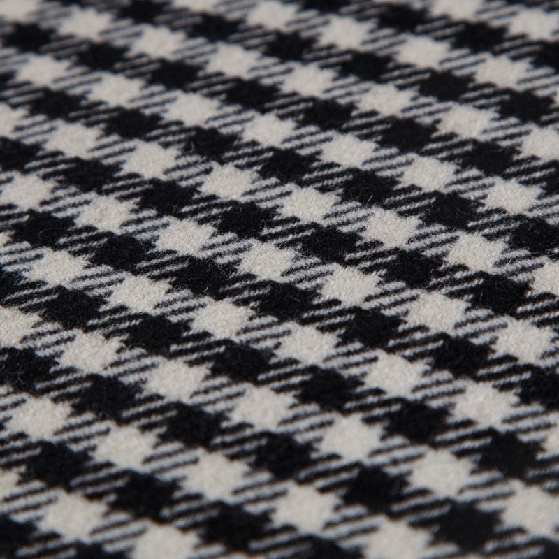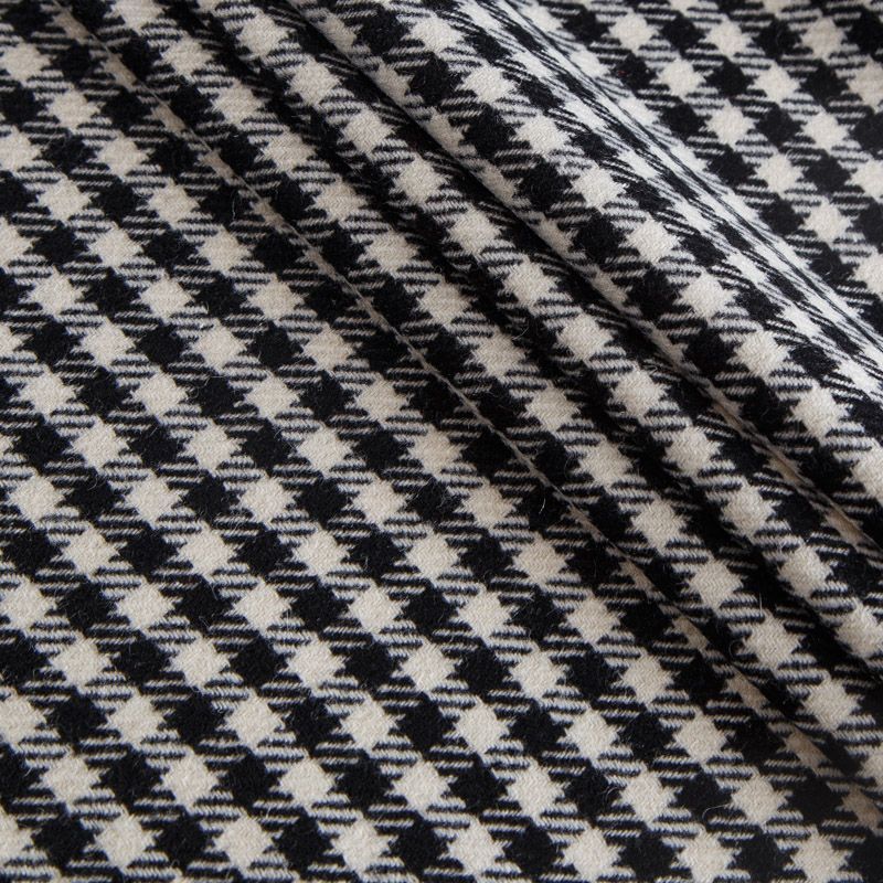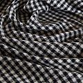 Итальянская костюмно-плательная шерсть средней плотности, не сухая, пластичная, приятная на ощупь, формоустойчива, не мнется, хорошо драпируется. Мелкая клетка образована за счет сочетания полос черного и молочного оттенков. Ткань отлично подойдет на костюм, жилет, жакет, легкое пальто, юбку, брюки, плате, сарафан, шорты.