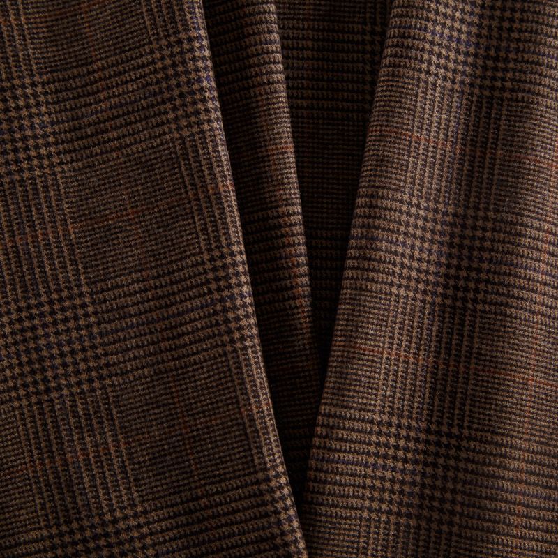 Итальянская шерстяная костюмная клетка гленчек в духе настоящей английской классики в благородном коричневом оттенке. Ткань мягкая, хорошо держит форму, не мнётся, не колется. Отлично подойдёт для жакета, платья, жилета, облегчённого пальто, брюк или юбки.