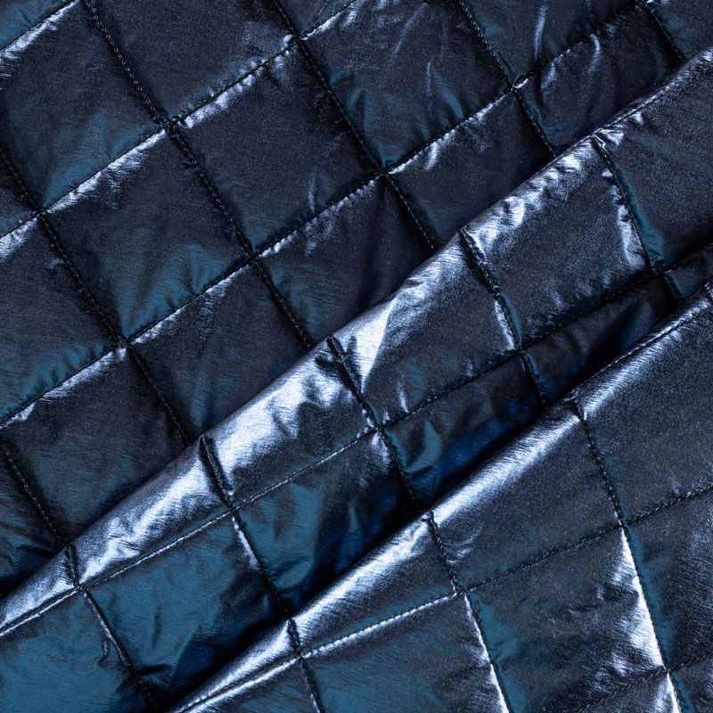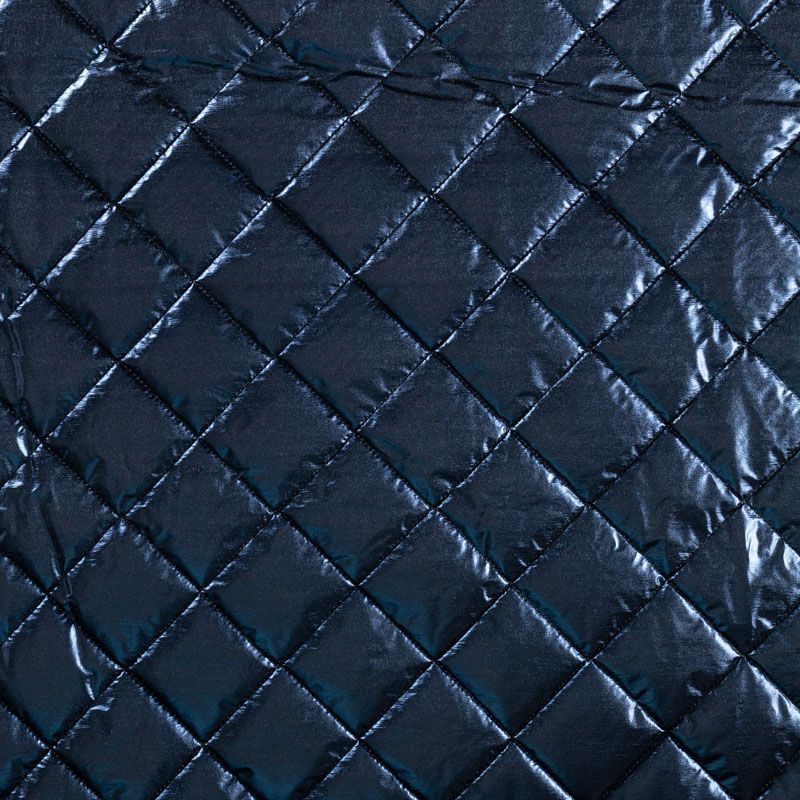Трехслойная итальянская курточная ткань космического синего оттенка с легким эффектом металлик, простеганная не крупными ромбами размером 3х3 см. Нижний, черного цвета, заменяет подклад и верхний слой - полиэстер, по качеству напоминает болонь, между ними синтепон. Ткань легкая, пластичная, хорошо драпируется. Прекрасно подойдет для  пошива легких пальто, курток, бомберов, жилетов, накидок-кейпов, объемных сумок, одежды для домашних питомцев, туристического снаряжения.