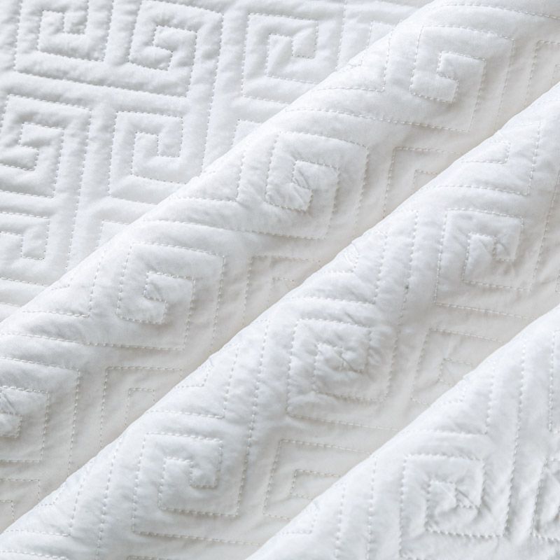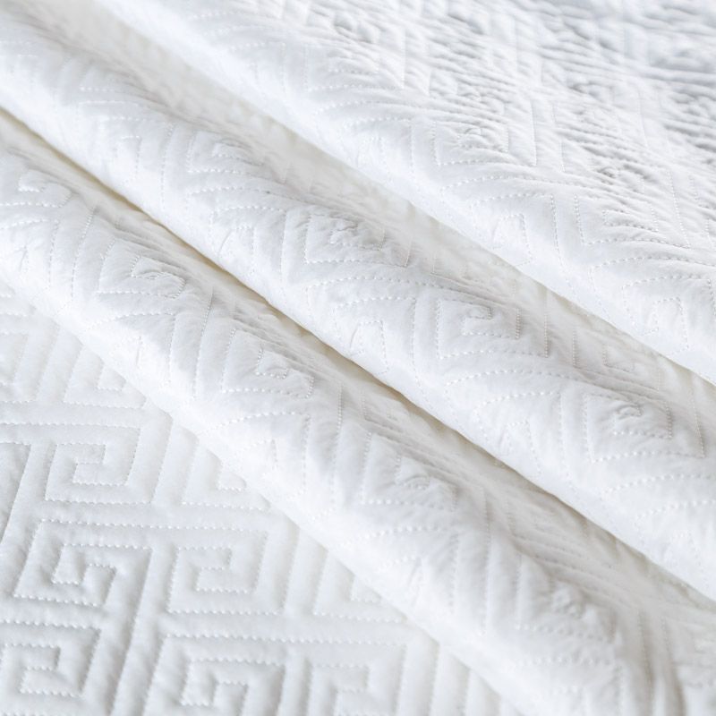 Двухслойная курточная ткань молочного оттенка, с геометрической стежкой нитками в тон полотну. Нижний слой - синтепон, верхний -  полиэстер, по качеству напоминает болонь. Ткань легкая, пластичная, хорошо драпируется. Прекрасно подойдет для  пошива пальто, курток, жилетов, накидок-кейпов, объемных сумок, одежды для домашних питомцев, туристического снаряжения.