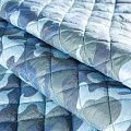 Двухслойная курточная ткань голубого оттенка с оригинальным камуфлированным принтом, простеганная не крупными ромбами. Нижний слой - синтепон, верхний - полиэстер, по качеству напоминает болонь. Очень мягкая и легкая, пластичная, хорошо драпируется. Прекрасно подойдет для  пошива легких пальто, курток, жилетов, накидок-кейпов, объемных сумок.