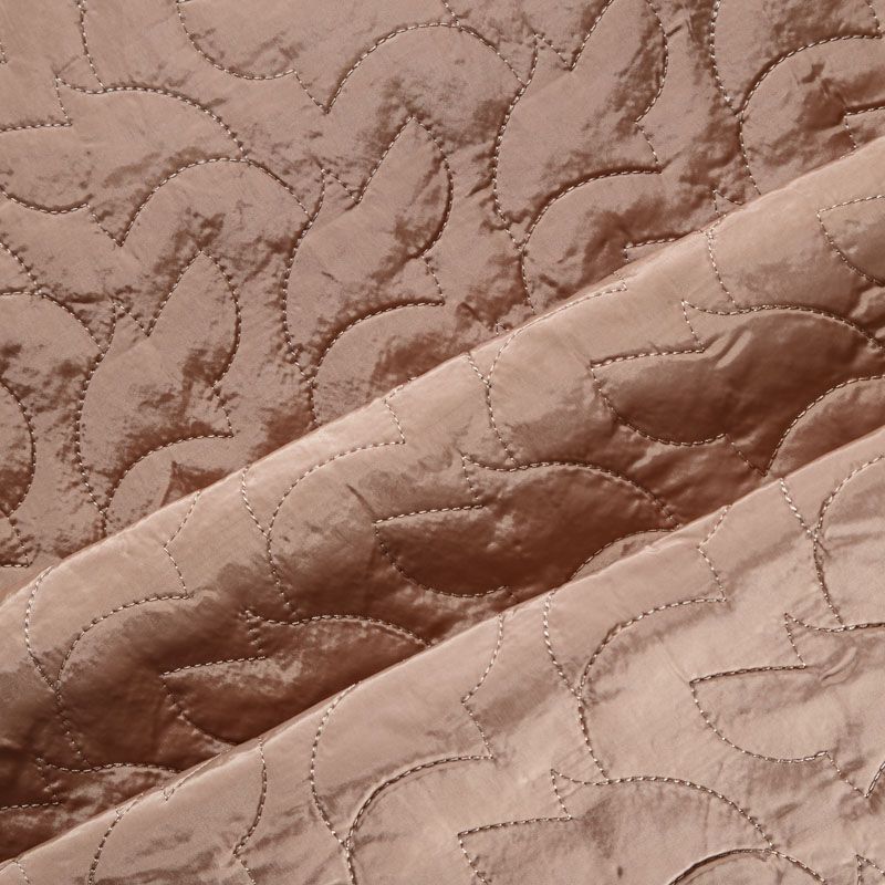 Двухслойная курточная ткань холодного бежевого оттенка, простеганная фигурной вышивкой нитками в тон. Нижний слой - синтепон, верхний - плотный матовый полиэстер. Очень мягкая и легкая, пластичная, хорошо драпируется. Прекрасно подойдет для  пошива легких пальто, курток, жилетов, накидок-кейпов, объемных сумок.