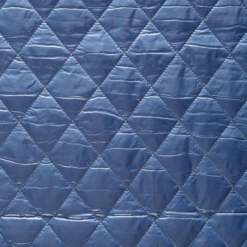 Трехслойная курточная ткань голубого оттенка, простеганная не крупными ромбами. Нижний слой - матовый фактурный полиэстер, средний - тонкий синтепон, верхний - глянцевая гладкая плащевка. Очень мягкая и легкая, пластичная, хорошо драпируется. Прекрасно подойдет для пошива легких пальто, бомберов, парки, курток, жилетов, накидок-кейпов, объемных сумок.