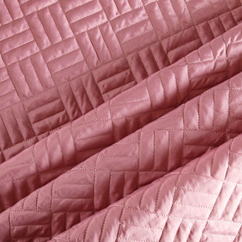 Двухслойная курточная ткань темно-розового оттенка, простеганная фигурной вышивкой нитками в тон. Нижний слой - синтепон, верхний - плотный матовый полиэстер. Очень мягкая и легкая, пластичная, хорошо драпируется. Прекрасно подойдет для пошива легких пальто, курток, жилетов, накидок-кейпов, объемных сумок.