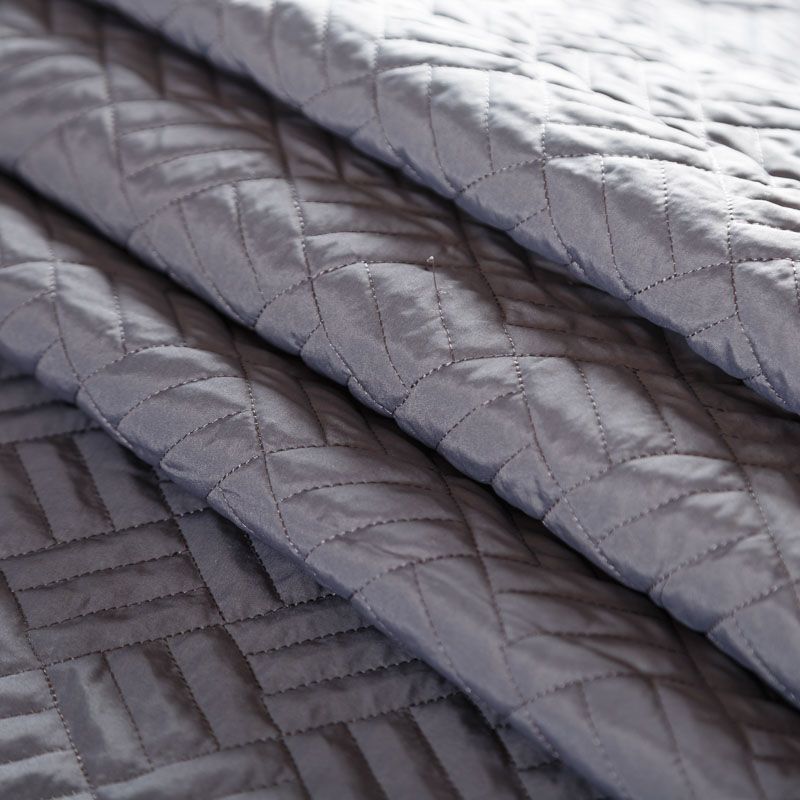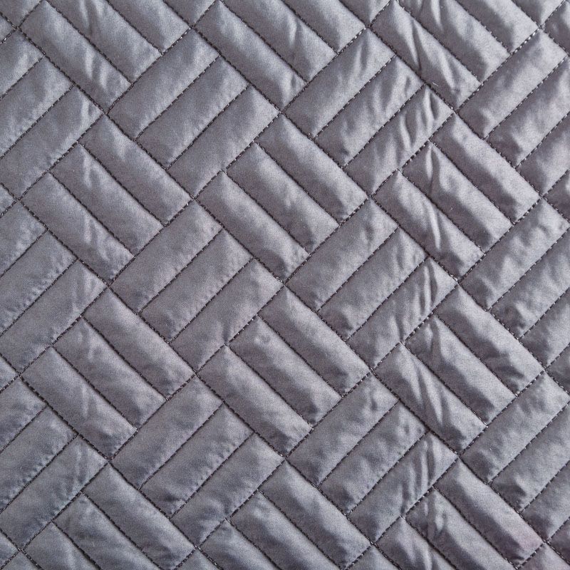 Двухслойная курточная ткань серого оттенка, простеганная фигурной вышивкой нитками в тон. Нижний слой - синтепон, верхний - плотный матовый полиэстер. Очень мягкая и легкая, пластичная, хорошо драпируется. Прекрасно подойдет для пошива легких пальто, курток, жилетов, накидок-кейпов, объемных сумок.