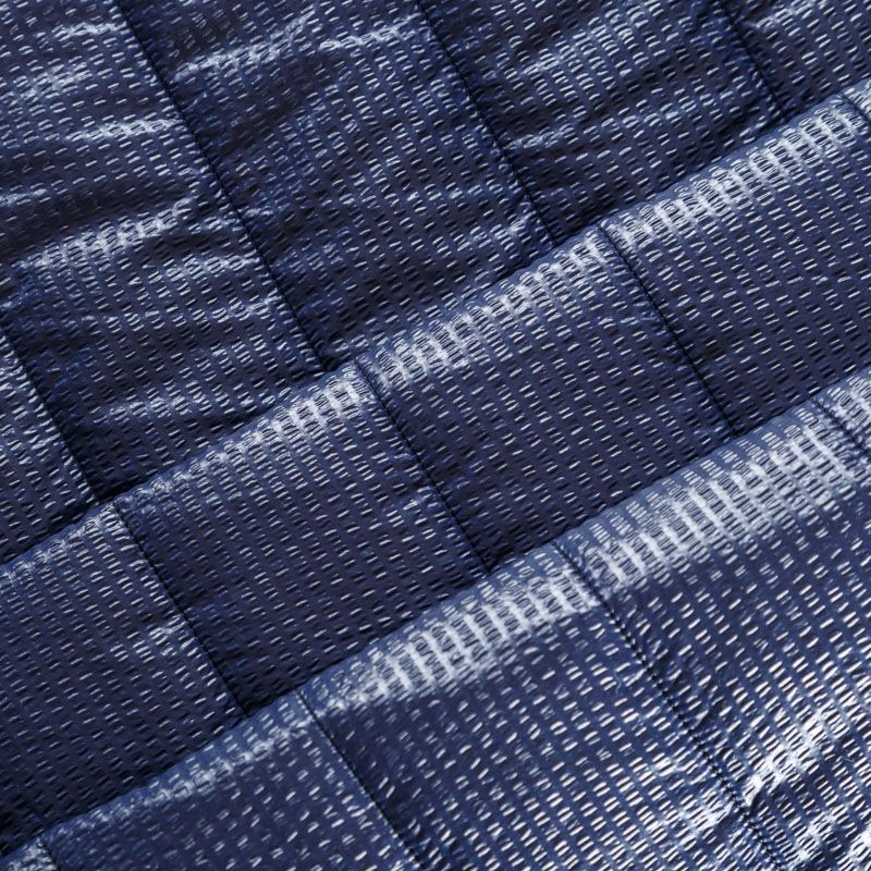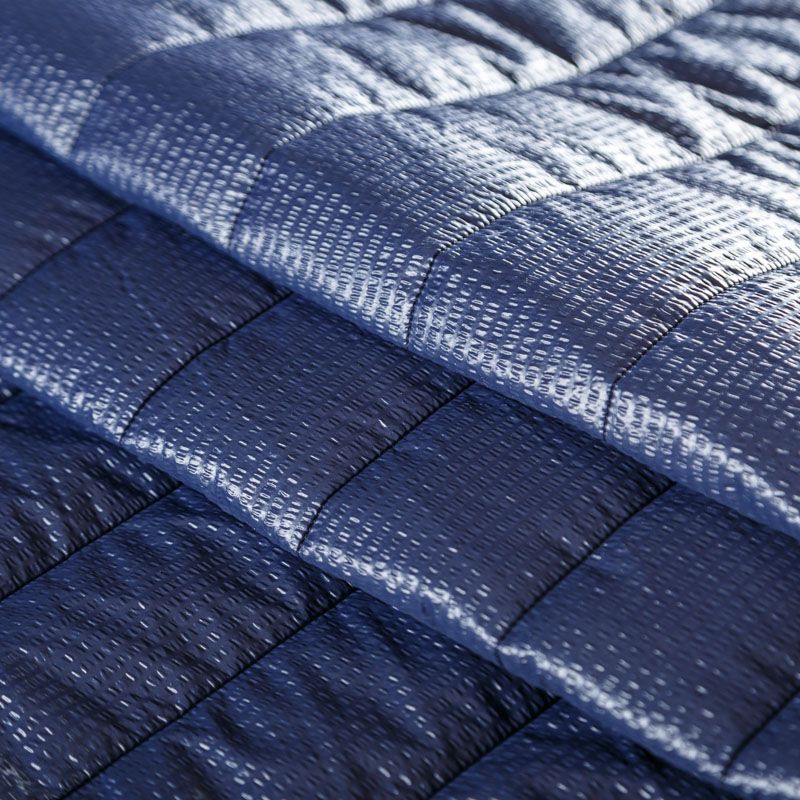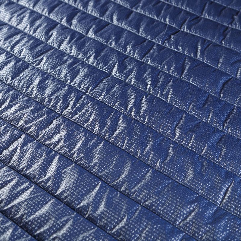 Итальяская двухслойная курточная ткань темно-синего оттенка, простеганная широкими полосами вдоль кромки. Нижний слой - воздушный синтепоновый утеплитель, верхний - матовая плащевая ткань с жатым эффектом. Очень мягкая и легкая, пластичная, хорошо драпируется. Прекрасно подойдет для  пошива легких пальто, бомберов, парки, курток, жилетов, накидок-кейпов, объемных сумок.