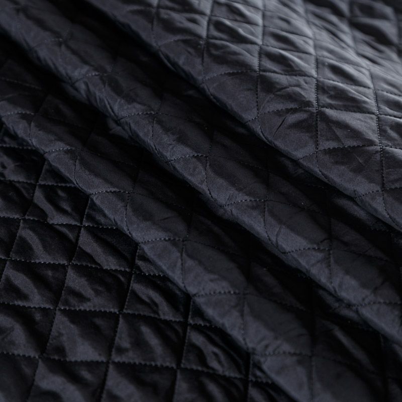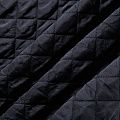 Двухслойная курточная ткань черного цвета, простеганная не крупными ромбами нитками в тон полотну. Нижний слой - синтепон, верхний - плотный матовый полиэстер. Очень мягкая и легкая, пластичная, хорошо драпируется. Прекрасно подойдет для пошива легких пальто, курток, жилетов, накидок-кейпов, объемных сумок.