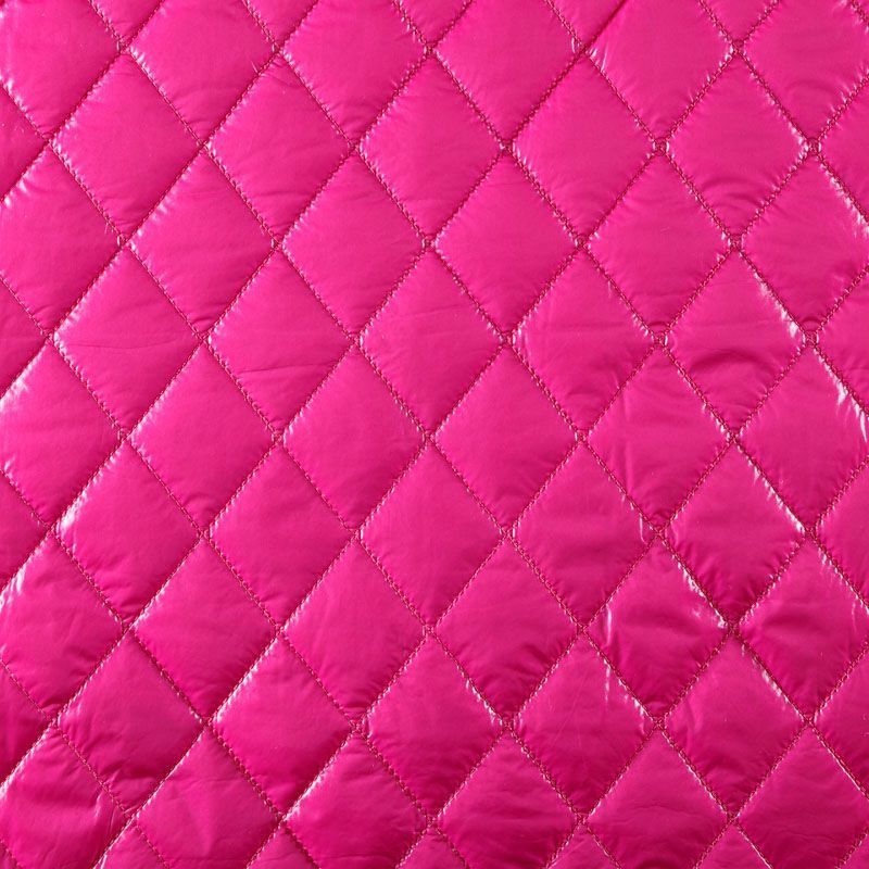 Трехслойная курточная стежка ярко-розового цвета, простеганная не крупными ромбами. Верхний  слой - полиэстер, по качеству напоминающий болонь, средний слой - синтепон, нижний слой - подкладочная ткань в тон лицевой. Очень мягкая и легкая, пластичная, хорошо драпируется. Прекрасно подойдет для  пошива легких пальто, курток, жилетов, накидок-кейпов, объемных сумок.