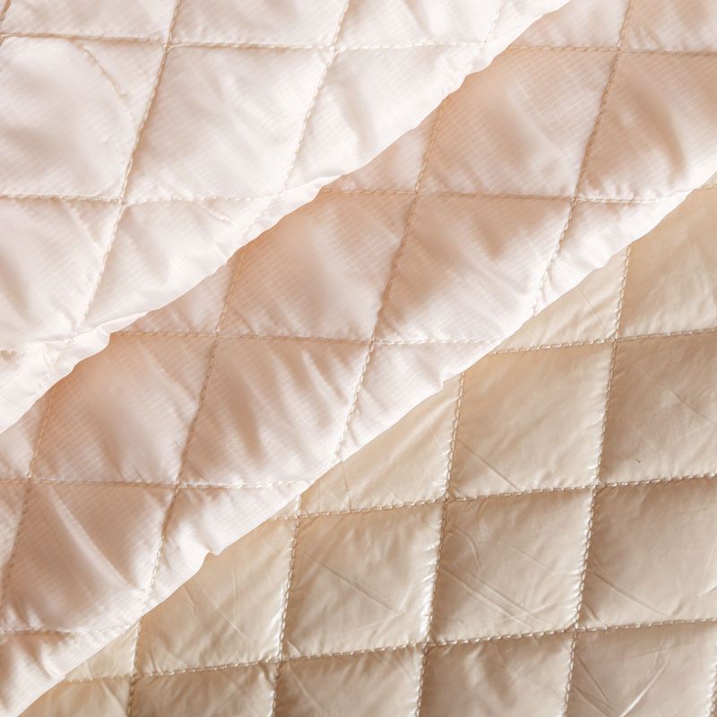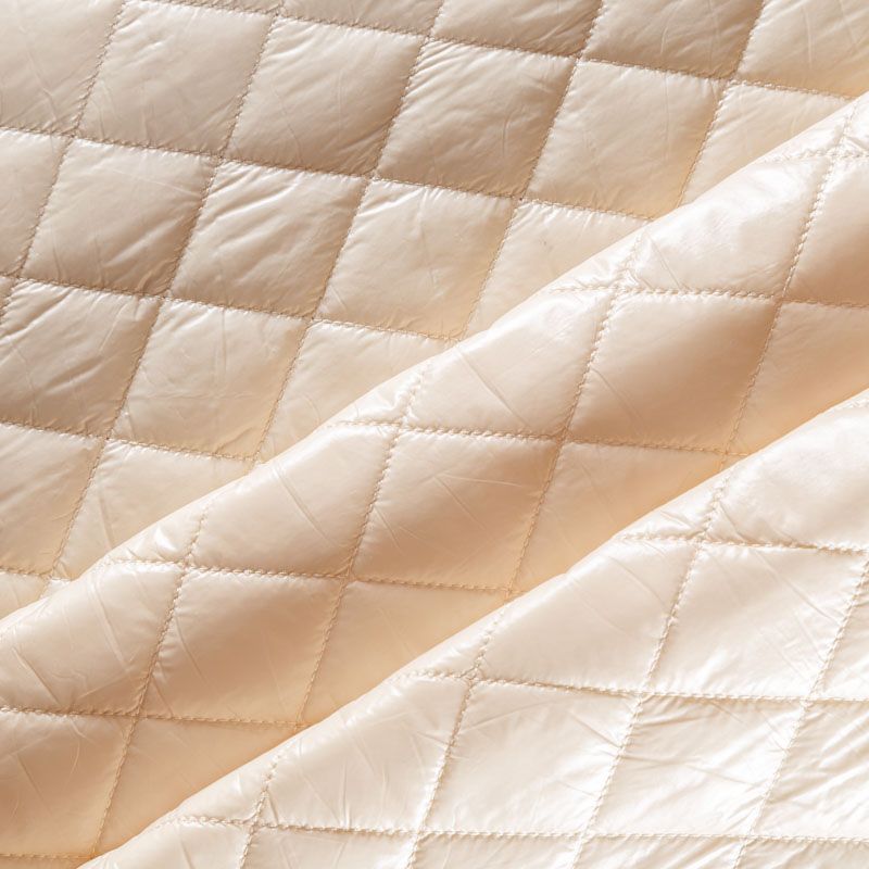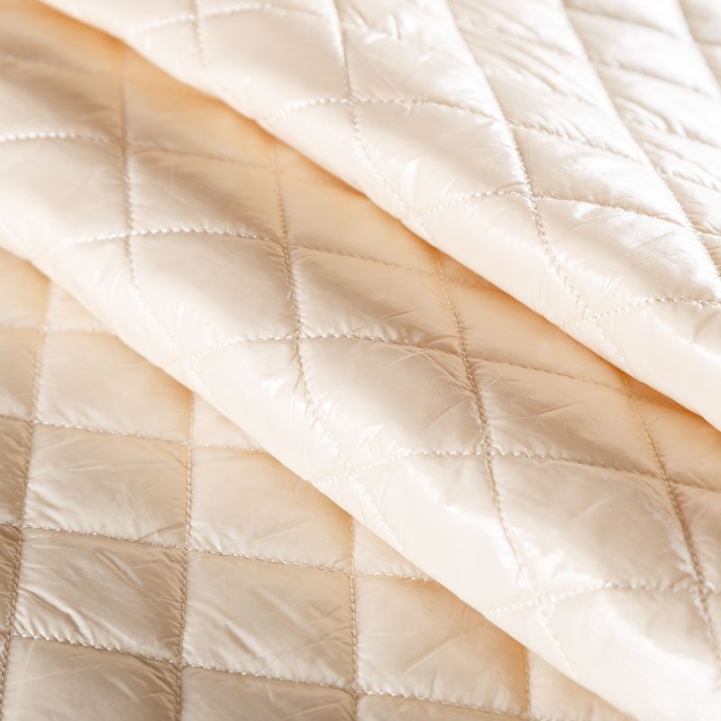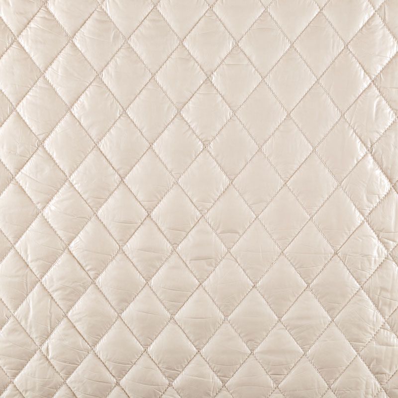 Трехслойная курточная стежка молочного оттенка, простеганная не крупными ромбами. Верхний  слой - полиэстер, по качеству напоминающий болонь, средний слой - синтепон, нижний слой - подкладочная ткань в тон лицевой. Очень мягкая и легкая, пластичная, хорошо драпируется. Прекрасно подойдет для  пошива легких пальто, курток, жилетов, накидок-кейпов, объемных сумок.
