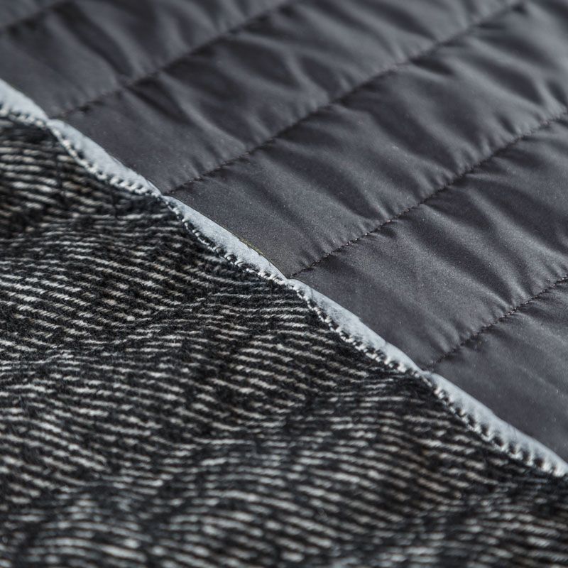 Итальяская трехслойная двухсторонняя курточная ткань,  простеганная широкими полосами вдоль кромки. Средний слой - синтепоновый утеплитель, нижний - матовая плотная плащевая ткань, верхний - черно-белый мягкий твид диагонального плетения. Очень мягкая и легкая, пластичная, хорошо драпируется. Прекрасно подойдет для  пошива легких пальто, бомберов, парки, курток, жилетов, накидок-кейпов, объемных сумок.