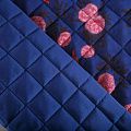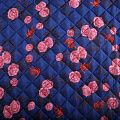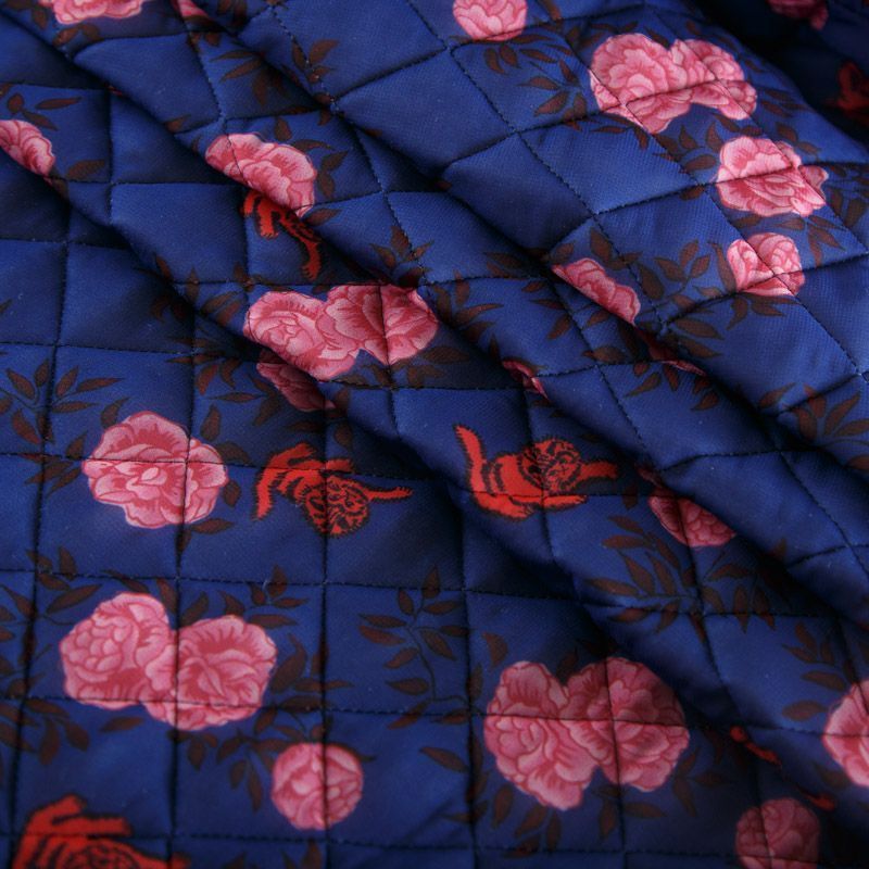 Итальянская трехслойная курточная ткань сапфирового оттенка с ярким принтом, простеганная ромбами. Нижний слой - гладкий матовый полиэстер синего цвета, средний слой - синтепон, верхний - принтованный. Очень мягкая и легкая, пластичная, хорошо драпируется. Прекрасно подойдет для пошива легких пальто, бомберов, парки, курток, жилетов, накидок-кейпов, объемных сумок.