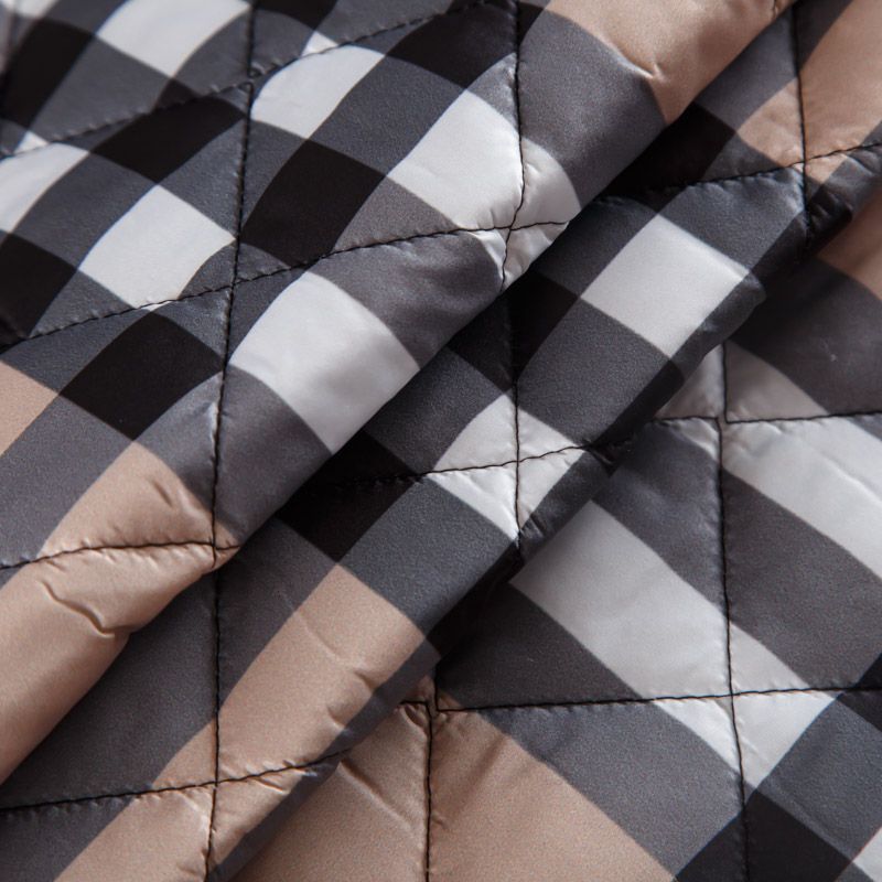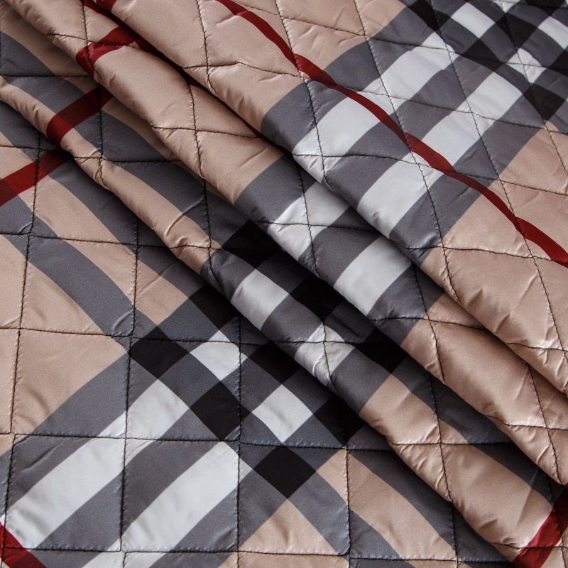 Итальянская трехслойная курточная ткань бежевого оттенка, простеганная ромбами 5*5 см. Нижний слой - подкладочная ткань черного цвета, средний слой - синтепон, верхний - матовый полиэстер с узнаваемым принтом. Очень мягкая и легкая, пластичная, хорошо драпируется. Прекрасно подойдет для  пошива легких пальто, бомберов, парки, курток, жилетов, накидок-кейпов, объемных сумок.