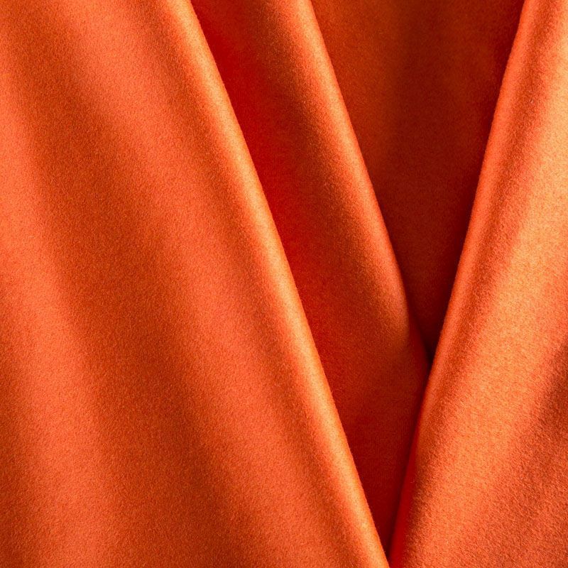 Пальтовая итальянская шерстьс кашемиром в красивом оранжевом оттенке. Ткань плотная, достаточно теплая, комфортная для одежды на сезон осень-зима. Полотно имеет короткий ворс. Мягкое и нежное на ощупь, не толстое и не тяжелое, хорошо держит форму. Прекрасно подойдет для пошива женских пальто, теплых костюмов, кейпов, мягких бомберов, жилетов и головных уборов.