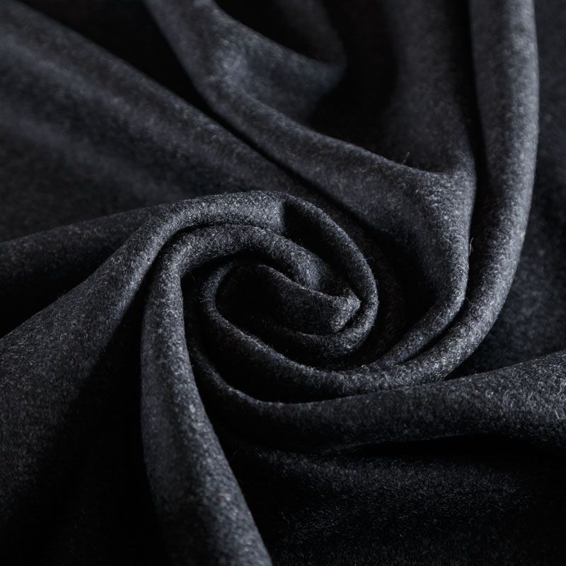Пальтовая итальянская шерсть в темно-сером оттенке с вкраплением "седых" волокон. Ткань плотная, достаточно теплая, комфортная для одежды на сезон осень-зима. Полотно имеет короткий ворс. Мягкое и нежное на ощупь, не толстое и не тяжелое, хорошо держит форму. Прекрасно подойдет для пошива женских пальто, теплых костюмов, кейпов, мягких бомберов, жилетов и головных уборов.