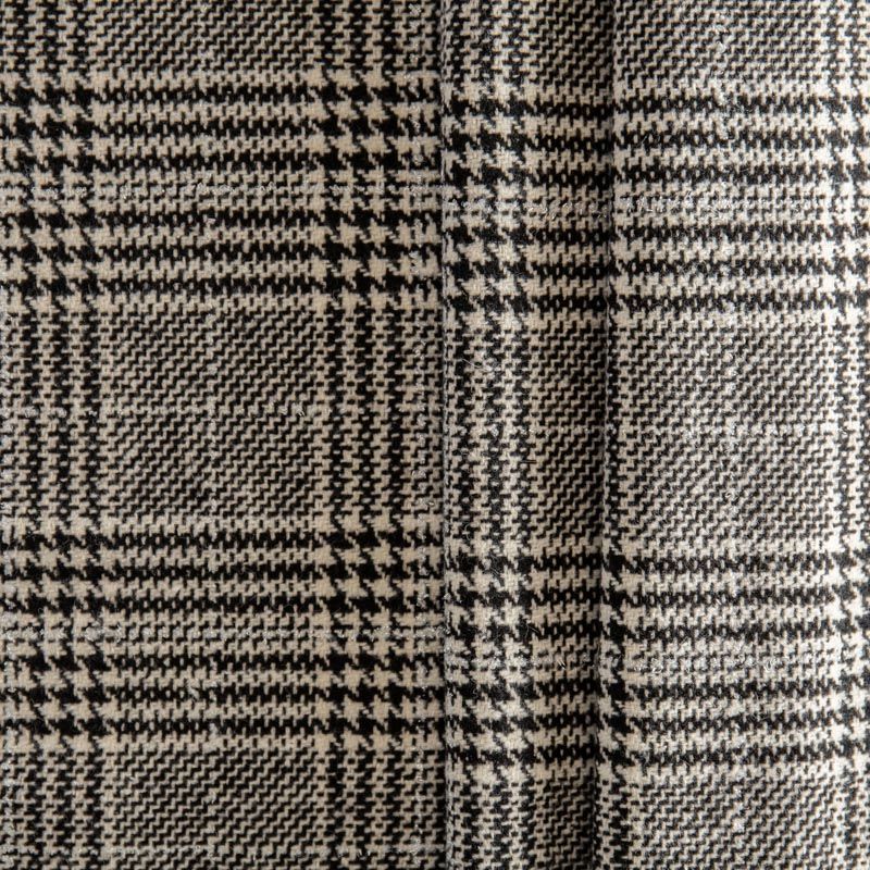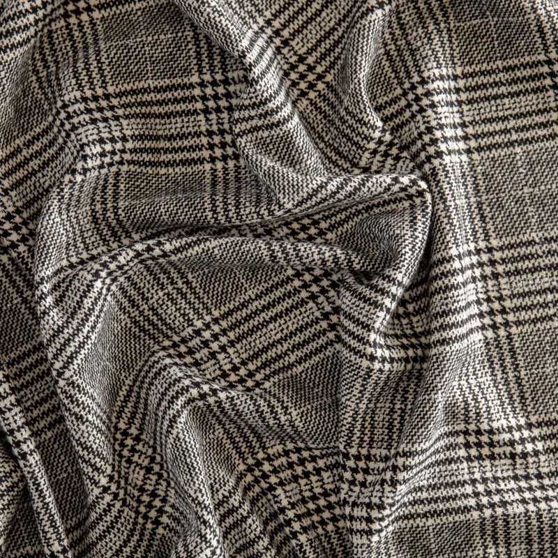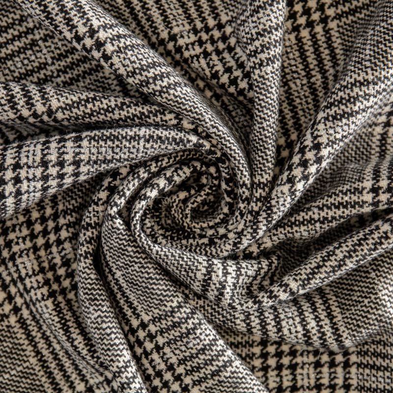 Плотная пальтовая ткань с добавлением шерсти, мягкая и приятная на ощупь, формоустойчива, хорошо драпируется. Переплетение нитей черного и белого цветов в узоре "гусиная лапка" и люрексной нити образует сложную красивую клетку тартан. Ткань отлично подойдет для пошива пальто, теплых костюмов, юбки, шорт, жакета, кейпа, жилета.