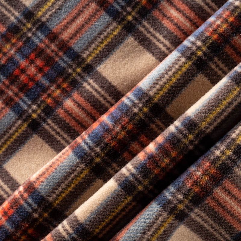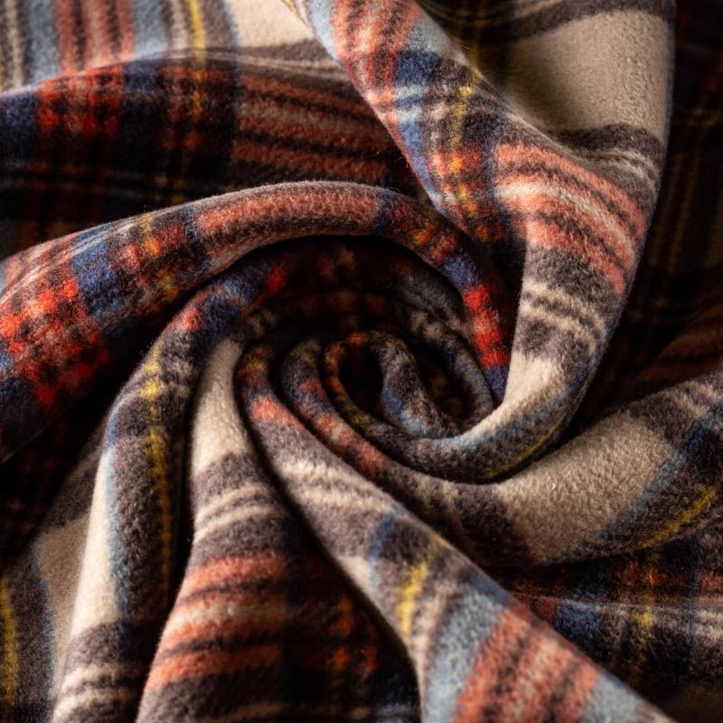 Пальтовая полушерстяная двухсторонняя ткань, мягкая и приятная на ощупь, формоустойчива, хорошо драпируется. Сочетание желтого, голубого, красного и черного цветов образует сложную красивую клетку на песочном фоне на лицевой стороне, изнанка - однотонный сине-голубой трикотаж. Ткань отлично подойдет на пальто любых фасонов, куртки-рубашки, теплого кардигана.