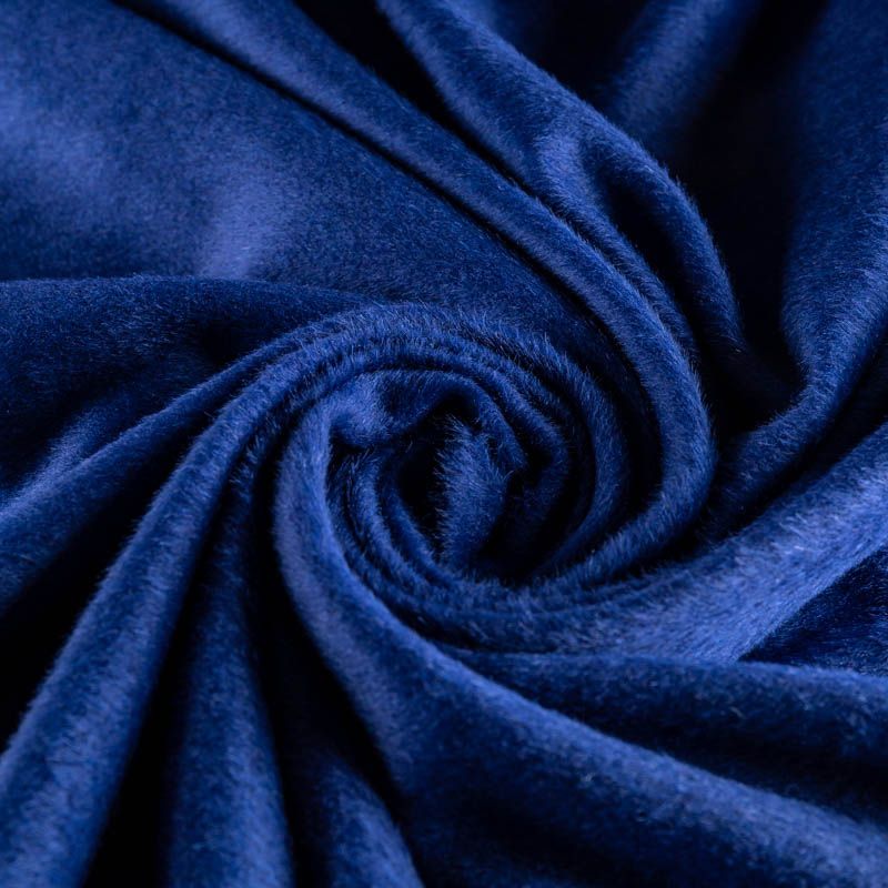 Пальтовая итальянская шерсть в синем оттенке. Ткань плотная, достаточно теплая, комфортная для одежды на сезон осень-зима. Полотно ворсистое, имеет «мохеровый эффект». Учитывайте направление ворса при крое изделия. Мягкое и нежное на ощупь, не толстое и не тяжелое, хорошо держит форму. Прекрасно подойдет для пошива женских пальто, теплых костюмов, кейпов, мягких бомберов, жилетов и головных уборов.