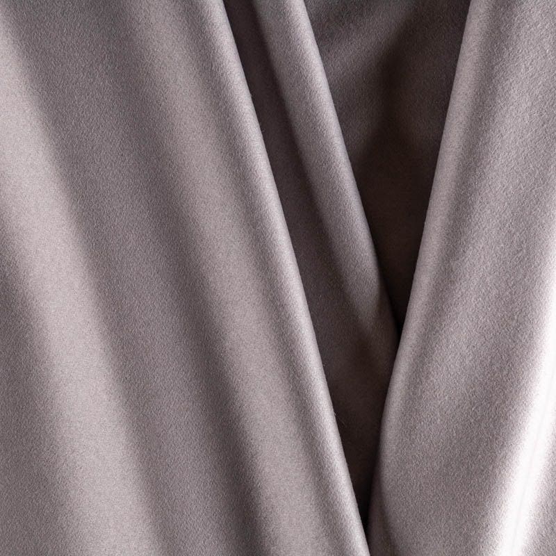 Пальтовая итальянская шерсть с кашемиром в сереом оттенке. Ткань плотная, достаточно теплая, комфортная для одежды на сезон осень-зима. Полотно имеет короткий ворс. Мягкое и нежное на ощупь, не толстое и не тяжелое, хорошр держит форму. Прекрасно подойдет для пошива женских пальто, теплых костюмов, кейпов, мягких бомберов, жилетов и головных уборов.