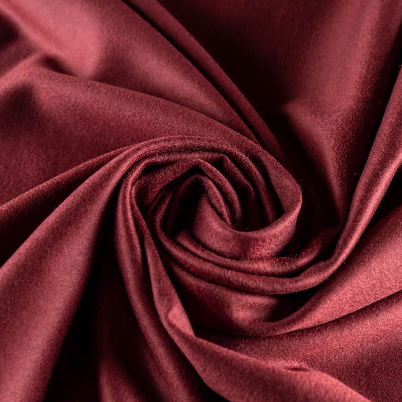 Пальтовая итальянская шерсть в бордовом оттенке. Ткань плотная, достаточно теплая, комфортная для одежды на сезон осень-зима. Полотно имеет короткий ворс. Мягкое и нежное на ощупь, не толстое и не тяжелое, хорошр держит форму. Прекрасно подойдет для пошива женских пальто, теплых костюмов, кейпов, мягких бомберов, жилетов и головных уборов.